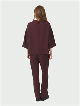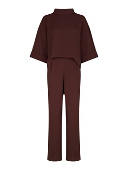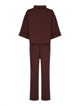 Lækker buksedragt fra Neo Noir i smuk bordeaux rød farve. Buksedragten har brede ben og korte ærmer, samt en smart åbning i ryggen. Modellen er 176 cm høj og er iført en str. 36.