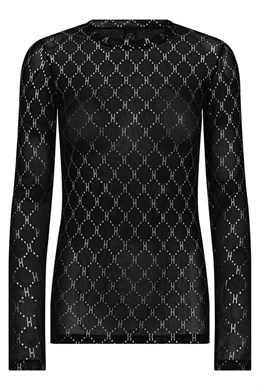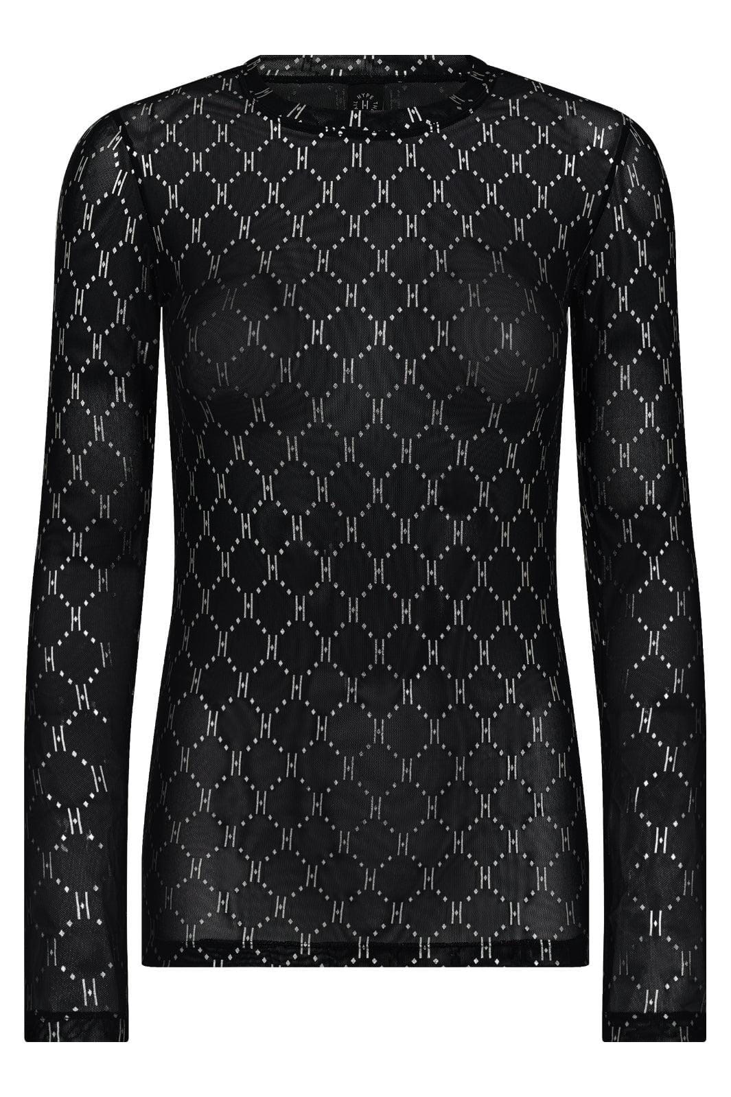 Flot sort bluse fra Hype the Detail med delikat sølv logo-print. Blusen har en skøn tætsiddende pasform med masser af stræk.