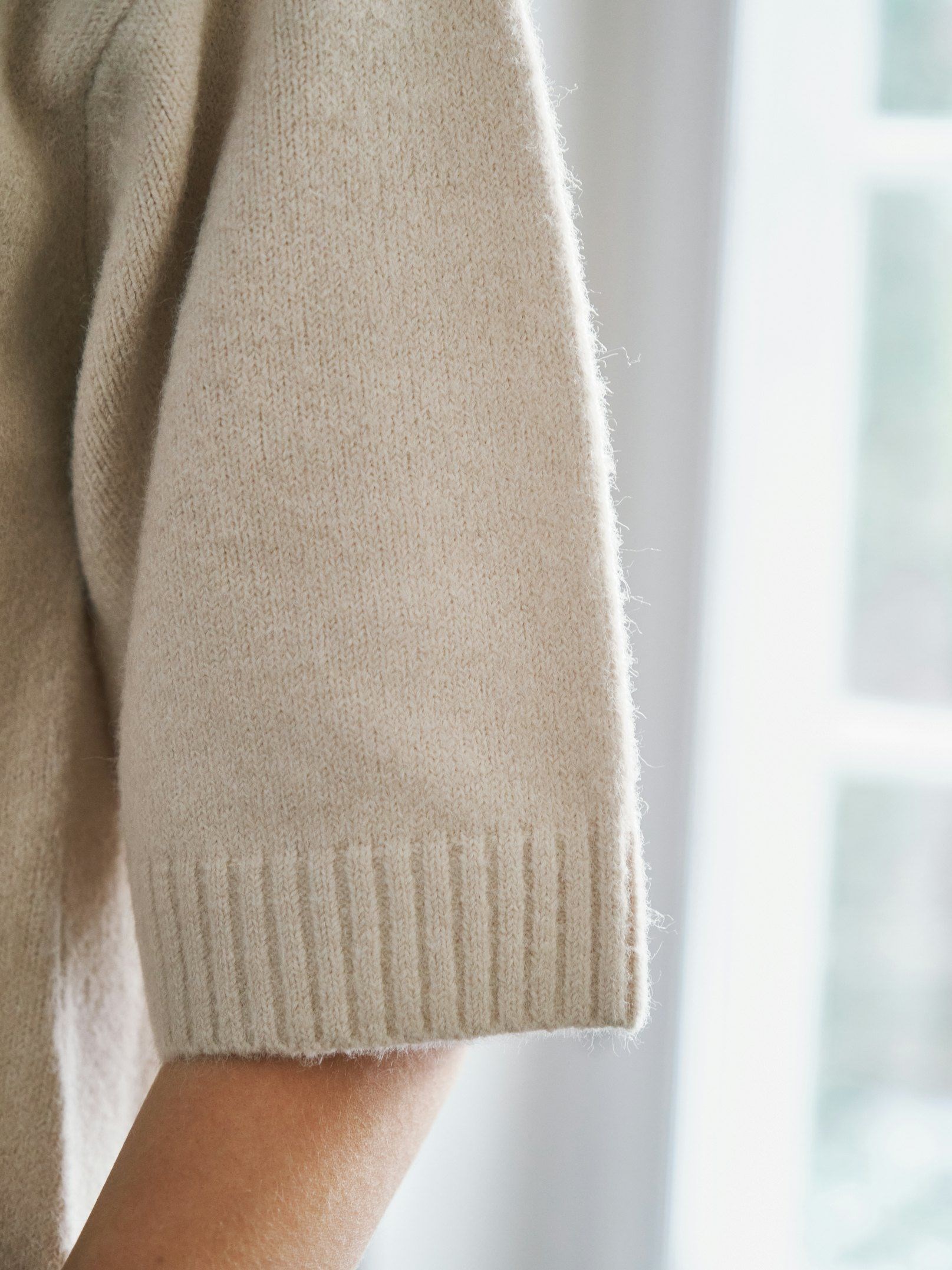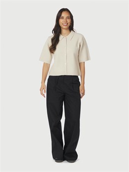 Blød strikket polo-cardigan fra Neo Noir med knappelukning og krave samt korte ærmer. Modellen er 176 høj og iført størrelse 36.