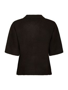 Blød strikket polo-cardigan fra Neo Noir med knappelukning og krave samt korte ærmer. Modellen er 176 høj og iført størrelse 36.