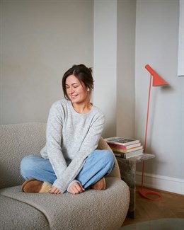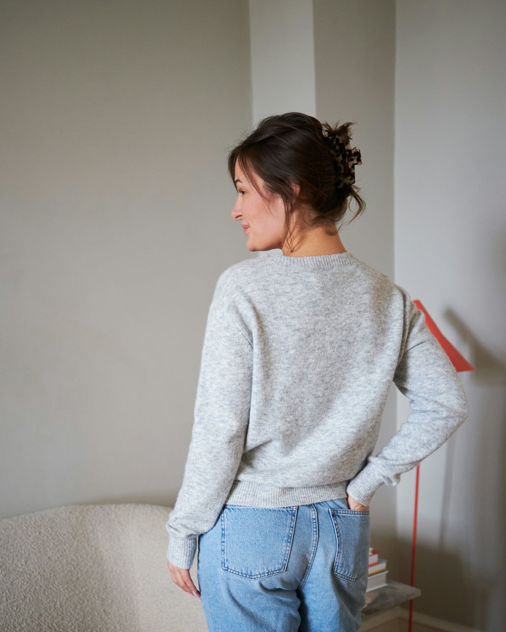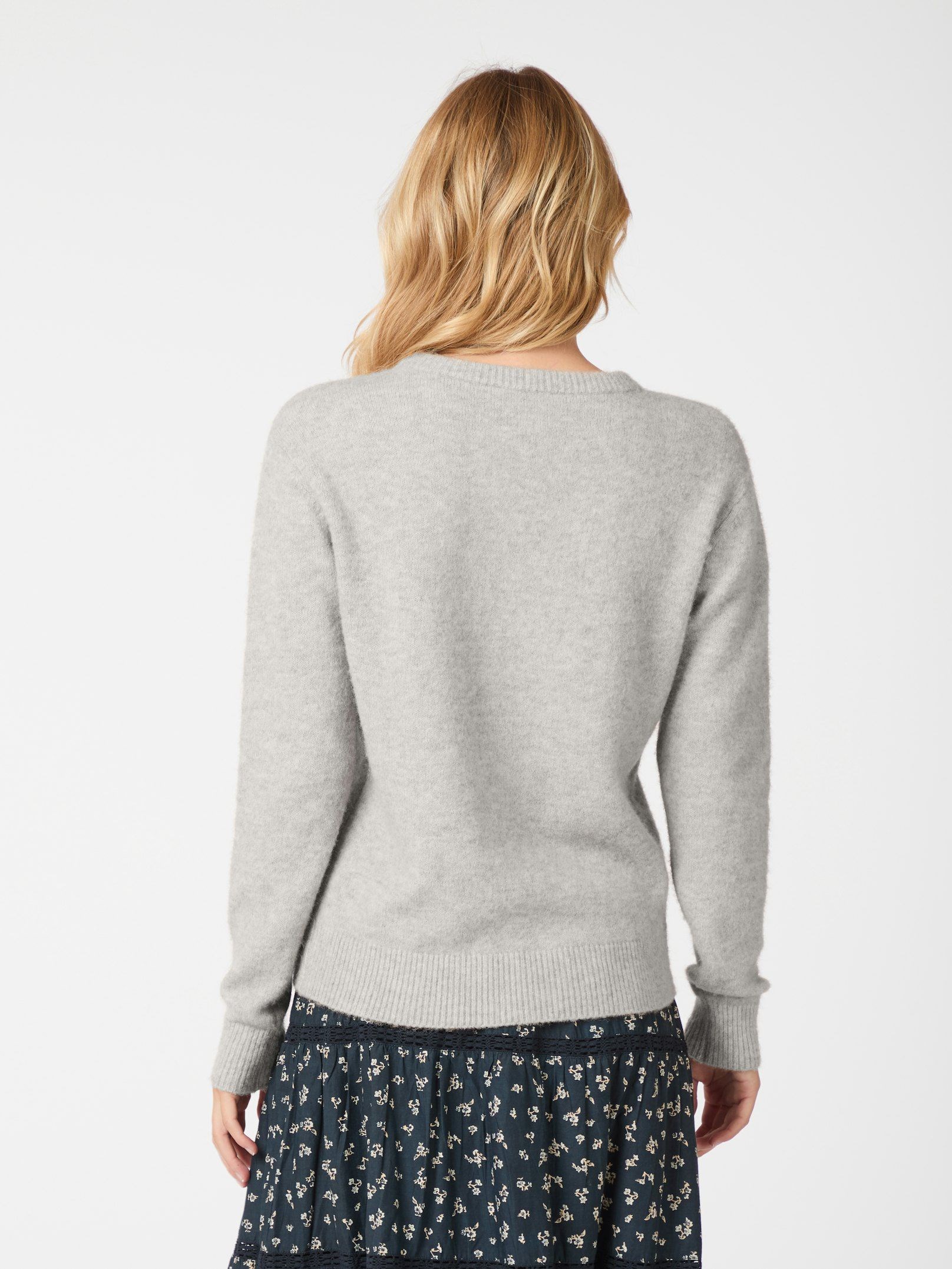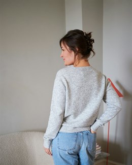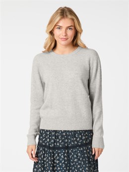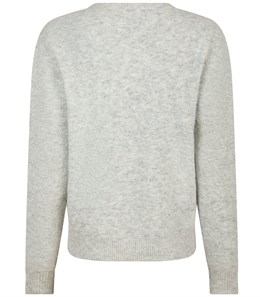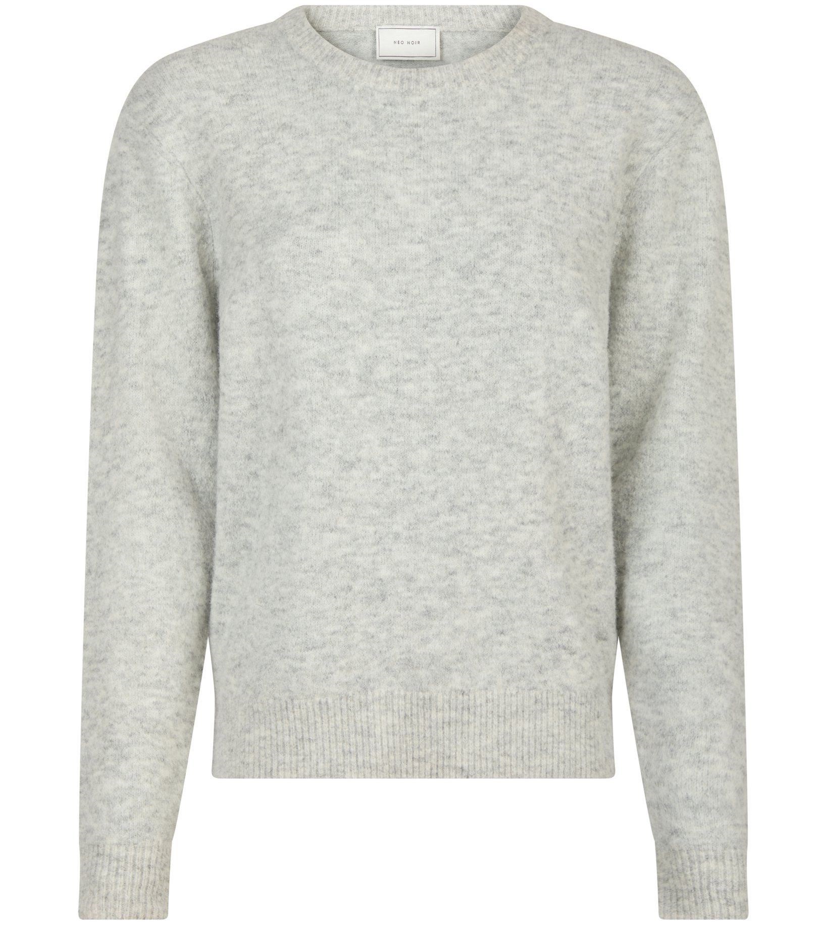 Blød strikbluse fra Neo Noir i lysegrå meleret farve. Blusen er dejlig lun og har en skøn pasform. Modellen er 176 cm høj og iført størrelse 36.