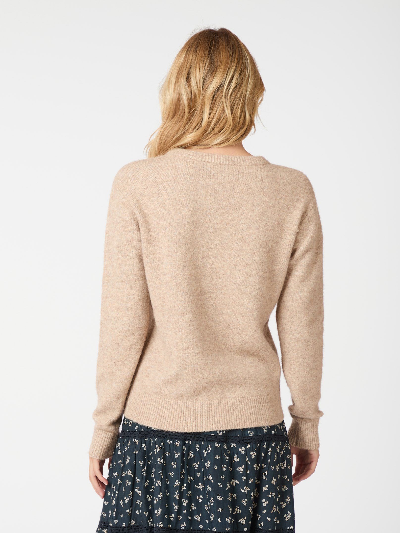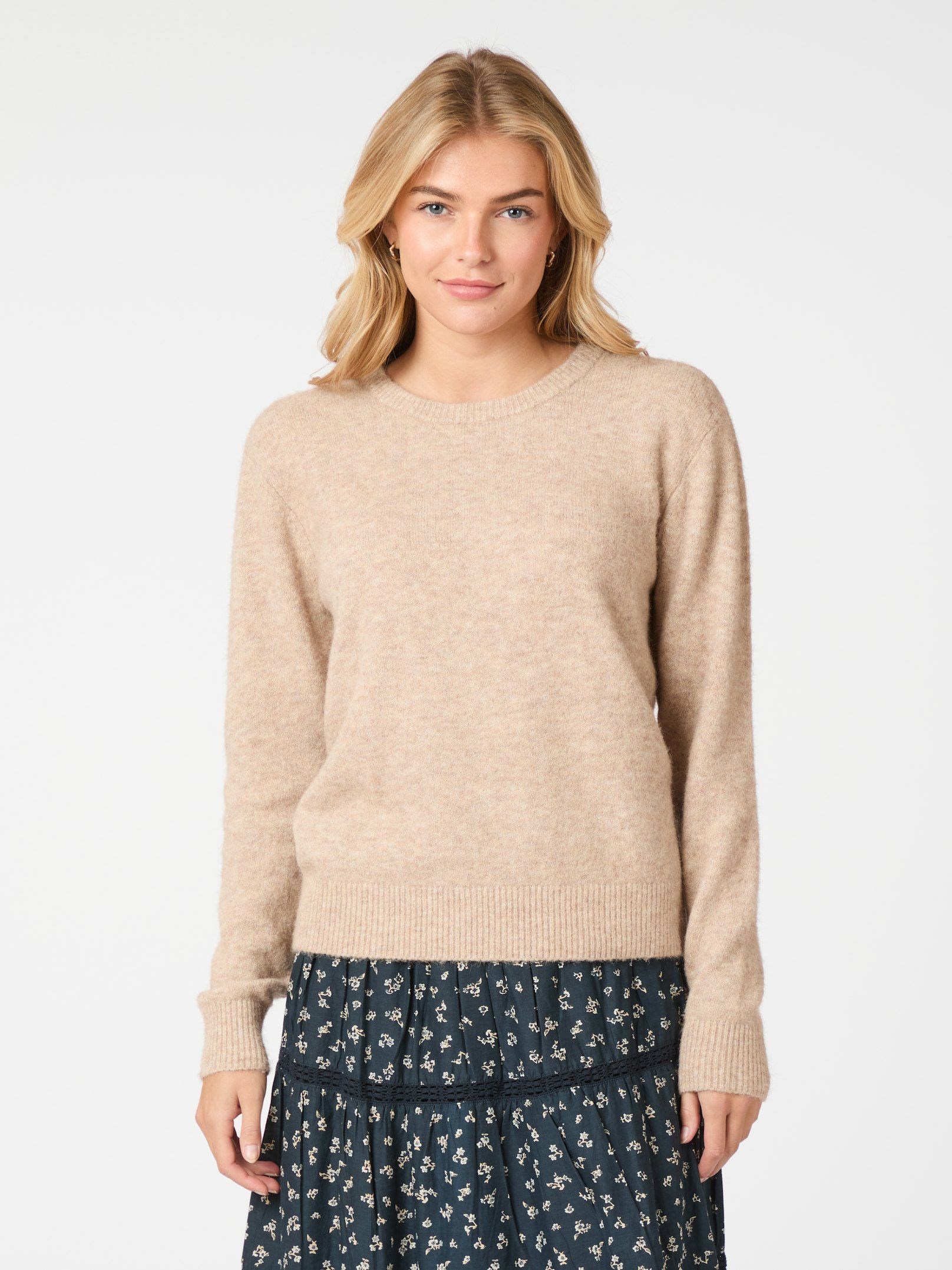 Blød strikbluse fra Neo Noir i meleret sand. Blusen er dejlig lun og har en skøn pasform. Modellen er 176 cm høj og iført størrelse 36.