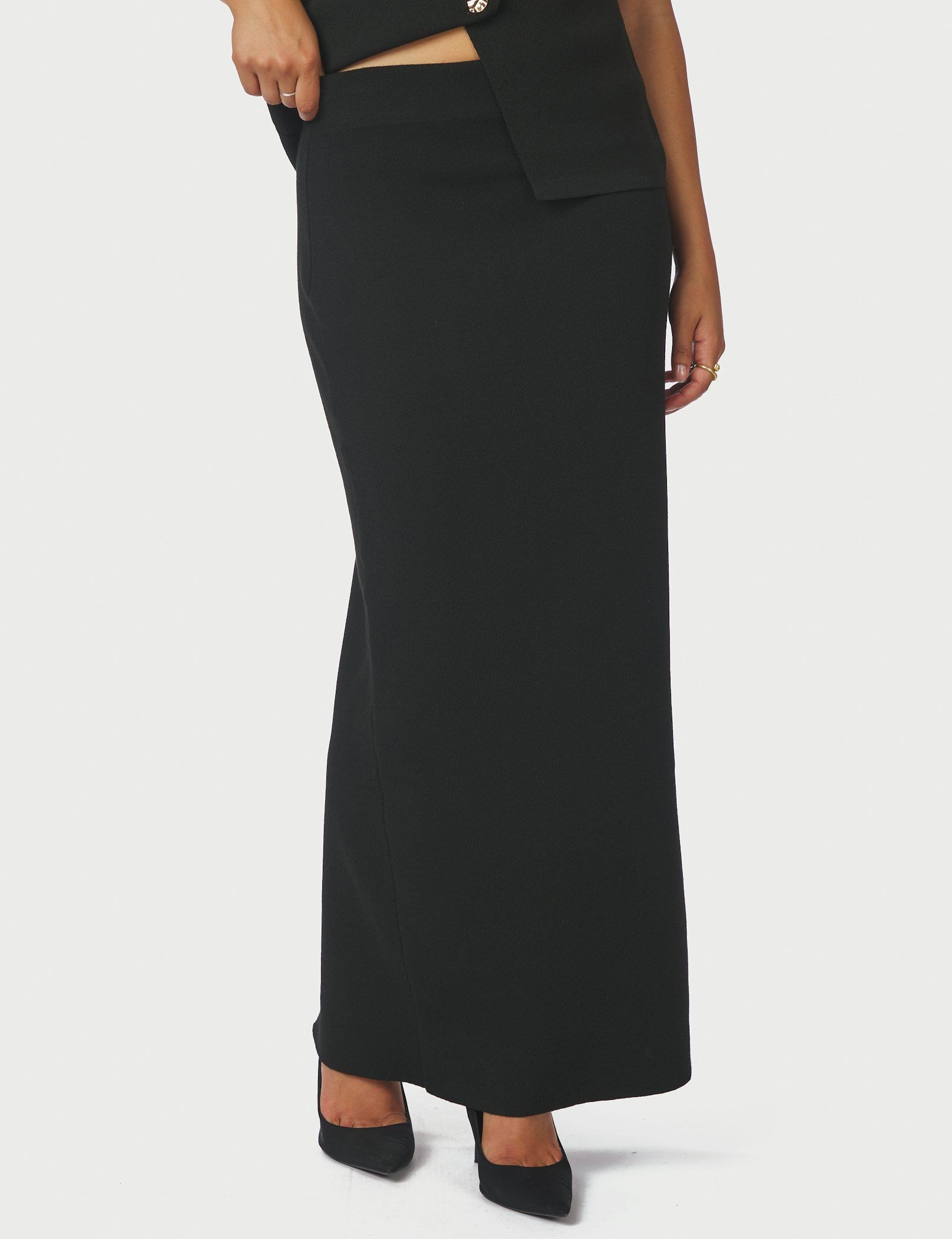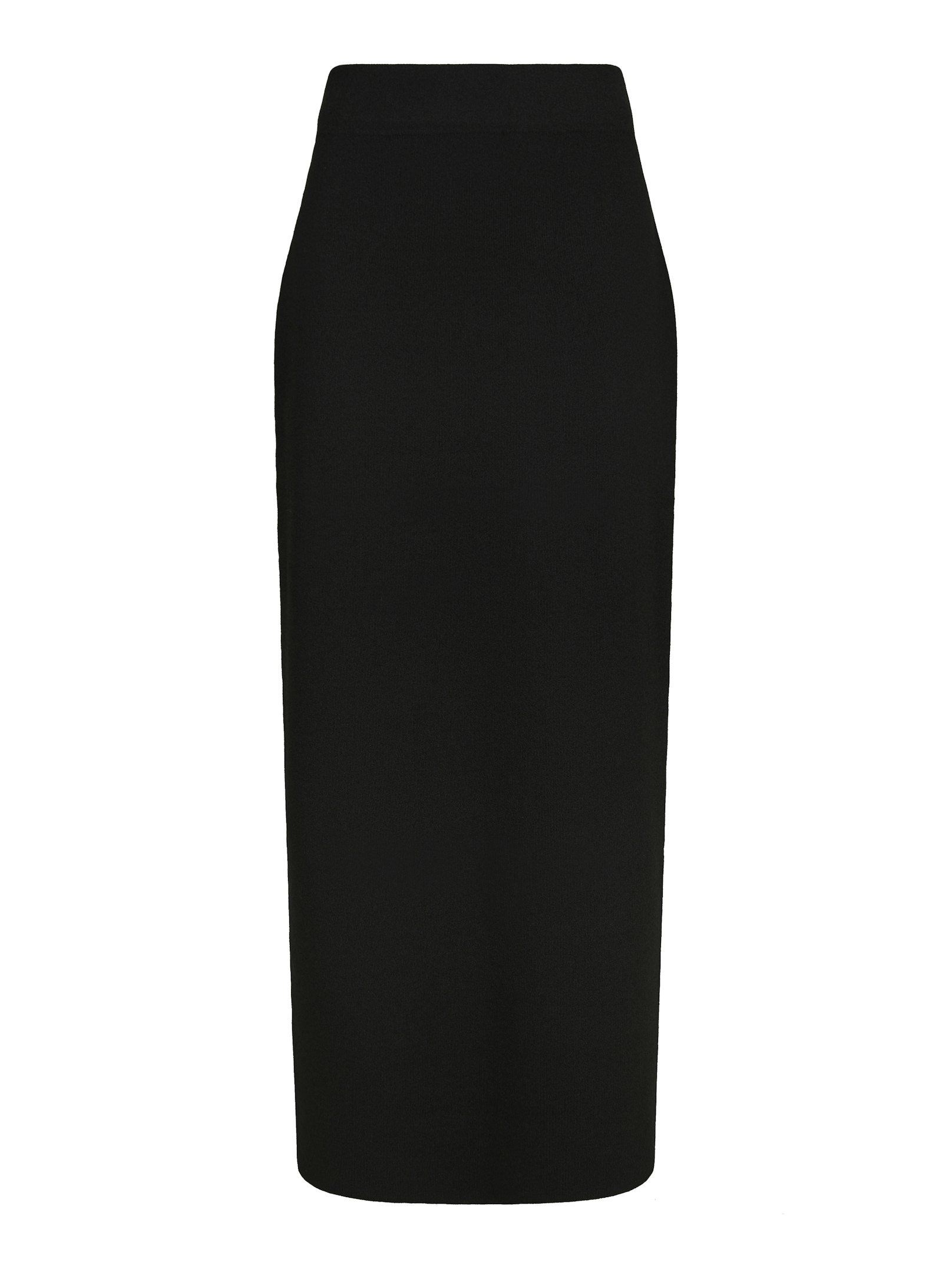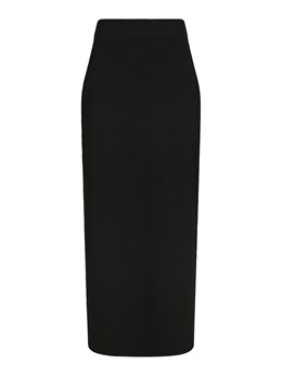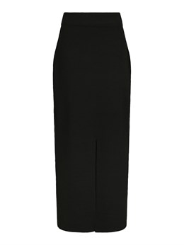 Flot lang nederdel fra Neo Noir i sort strikket kvalitet med tætsiddende pasform og en cool slids. Modellen er 176 cm høj og bruger størrelse 36.