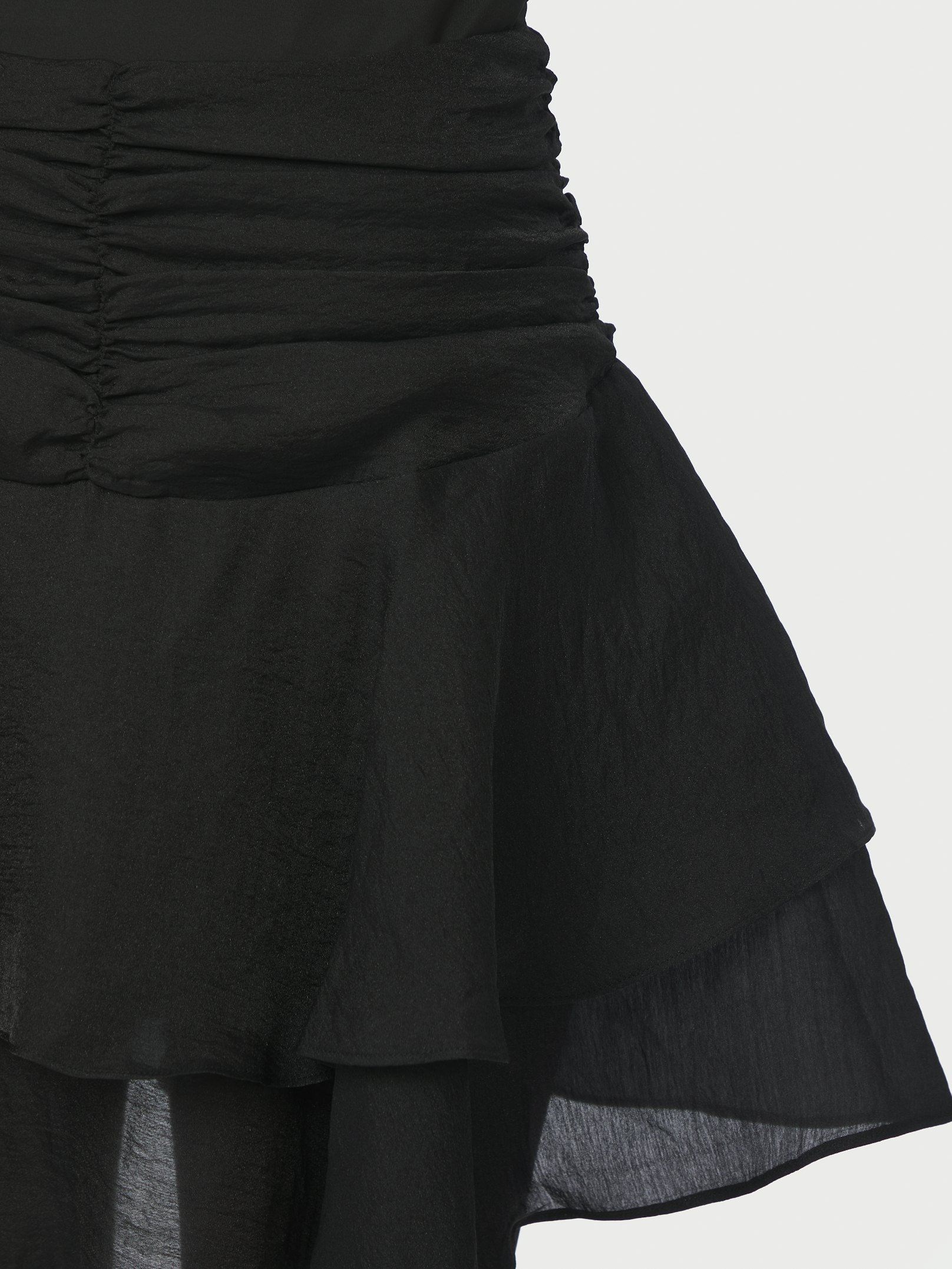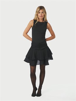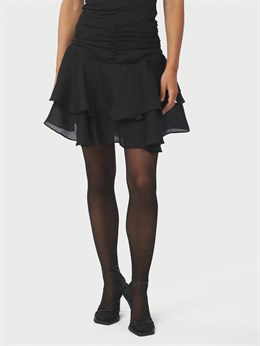 Fin kort nederdel fra Neo Noir med flæsedetaljer og elastik i livet bagpå. Modellen er 176 cm høj og bruger størrelse 36.