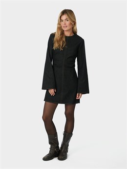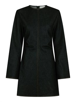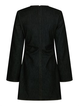 Virkelig flot tætsiddende denimkjole fra Neo Noir med lange ærmer, der er brede i bunden. Kjolen lynes i ryggen og kommer i en flot stræk denim kvalitet. Modellen er 176 cm og bærer en størrelse 36.