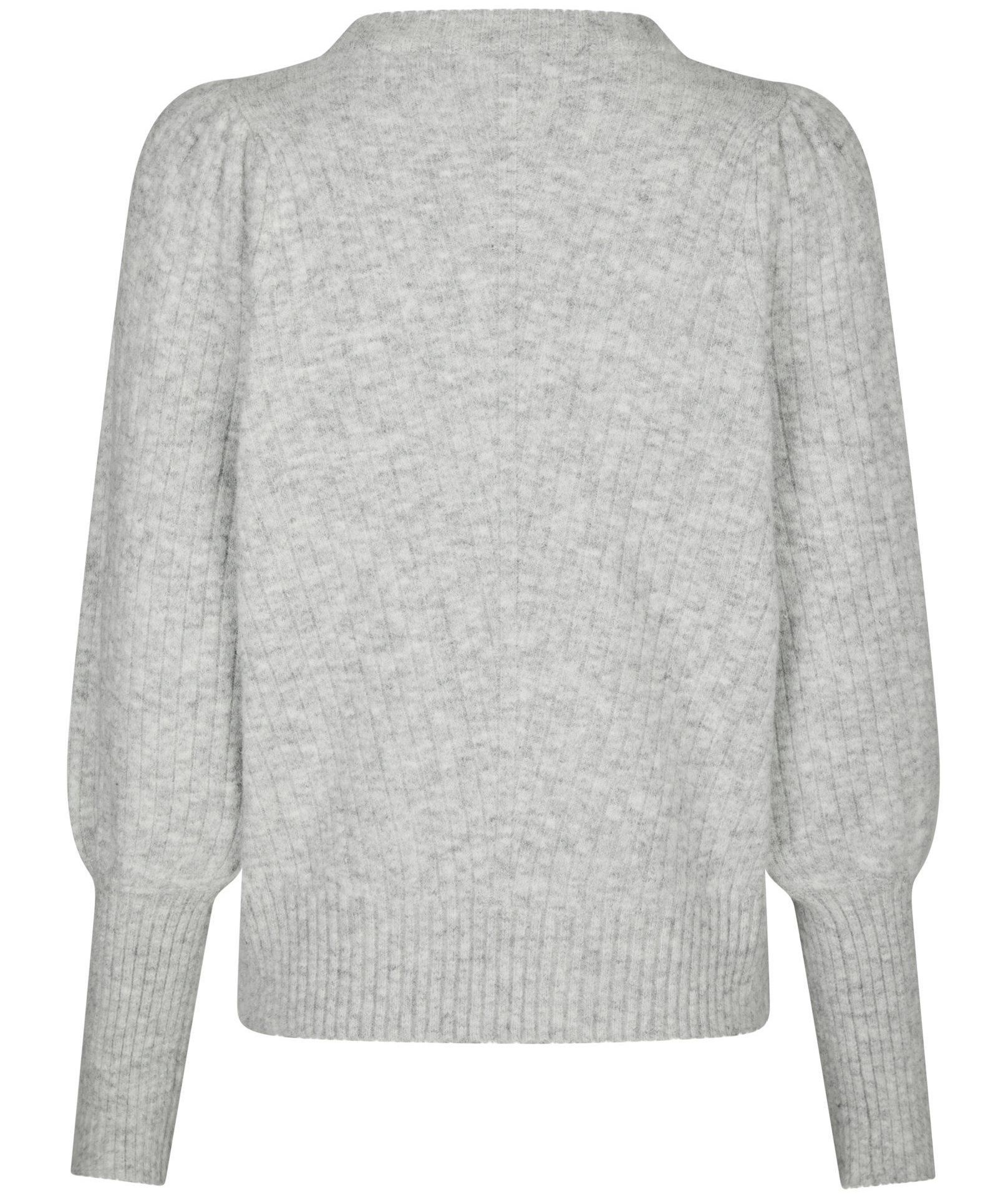 Lækker strik fra Neo Noir i en delikat lysegrå farve med fint mønster. Den har en rigtig skøn pasform med bred rib ved ærmerne og kvaliteten er lun og blød. Modellen er 176 høj og iført størrelse 36.