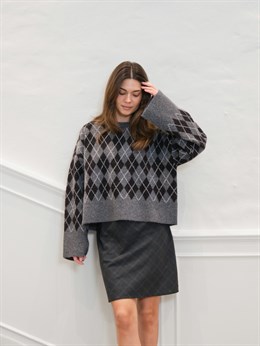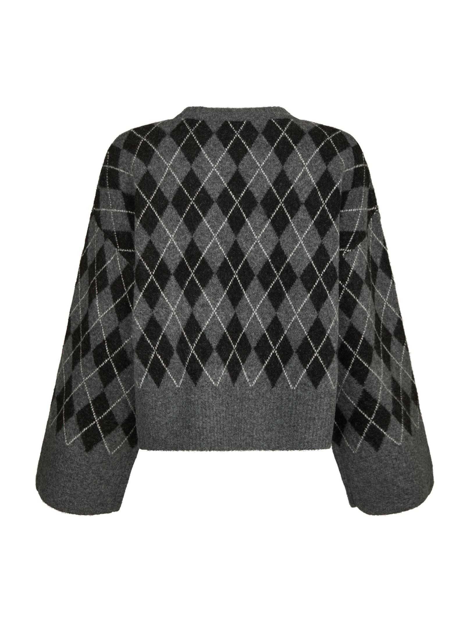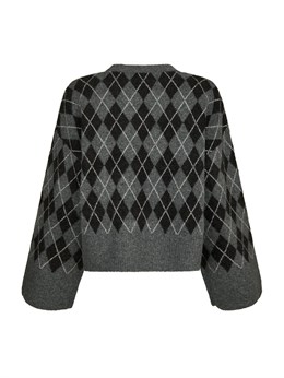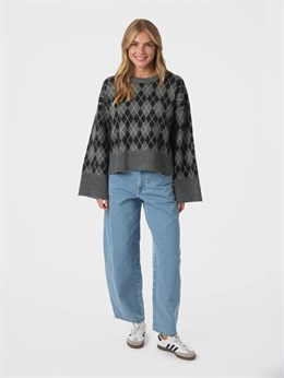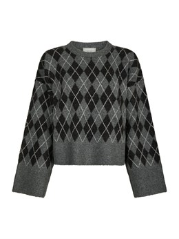 Lækker strik fra Neo Noir med cool argyle-mønster og en dejlig løs pasform med brede ærmer og rund hals. Modellen på billedet er 176 cm høj og iført en str. 36.