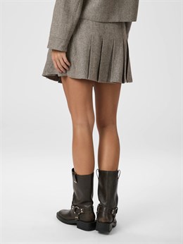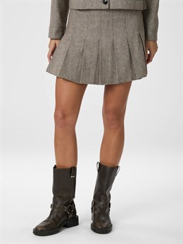 Kort plisseret nederdel fra Neo Noir i flot uldblanding med et virkelig delikat look og skjult lynlås. Modellen er 176 cm og bærer en størrelse 36.