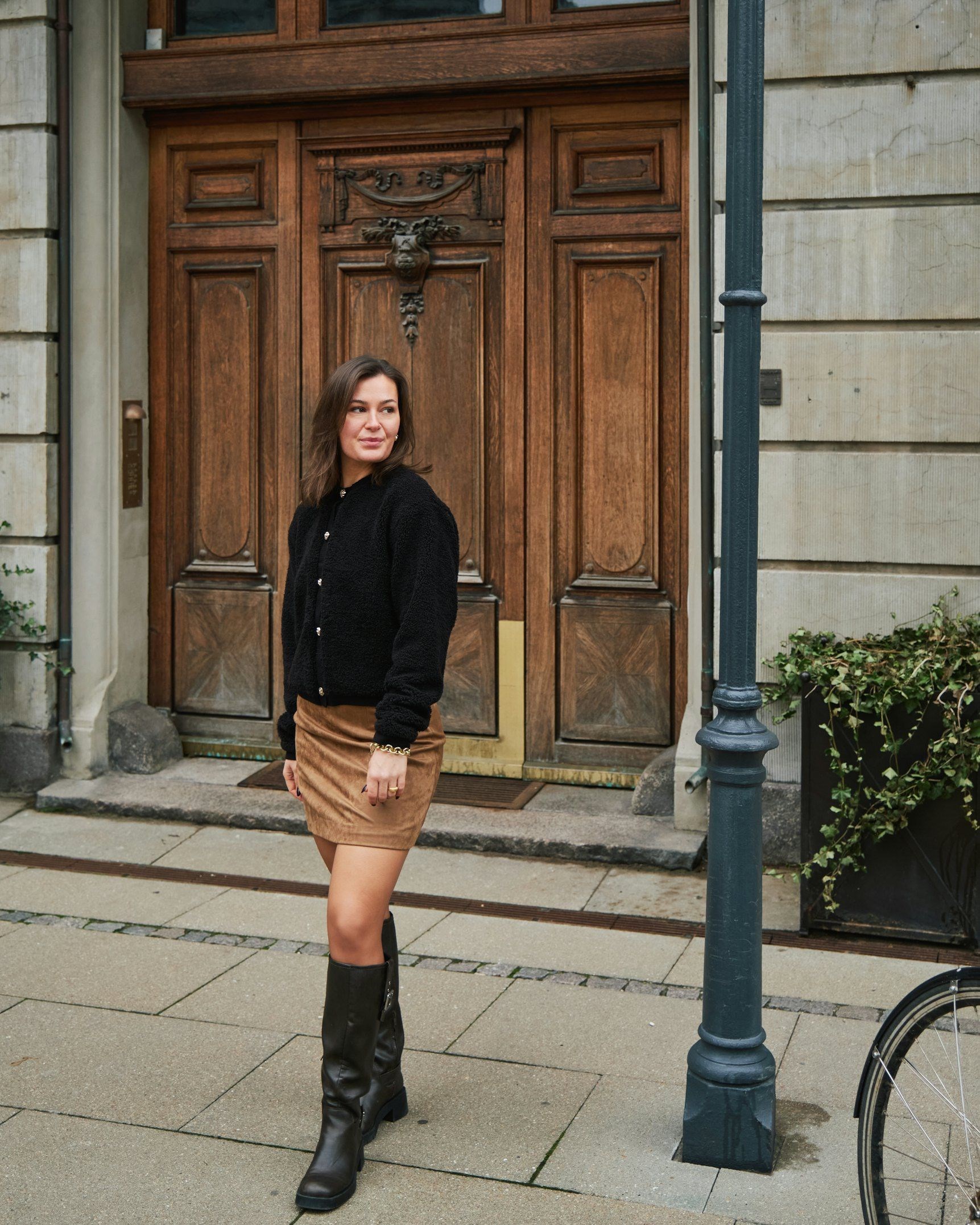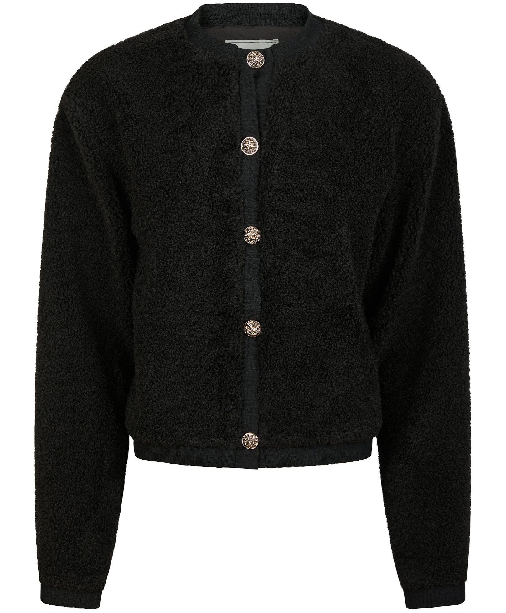 Flot sort cardigan fra Neo Noir i fluffy kvalitet med dekorative guldknapper. Modellen på billedet er 176 cm høj og iført en str. 36.