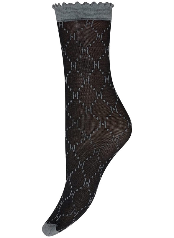 Sorte ankelstrømper fra Hype the Detail i fin 25 denier kvalitet med gråt logomønster.