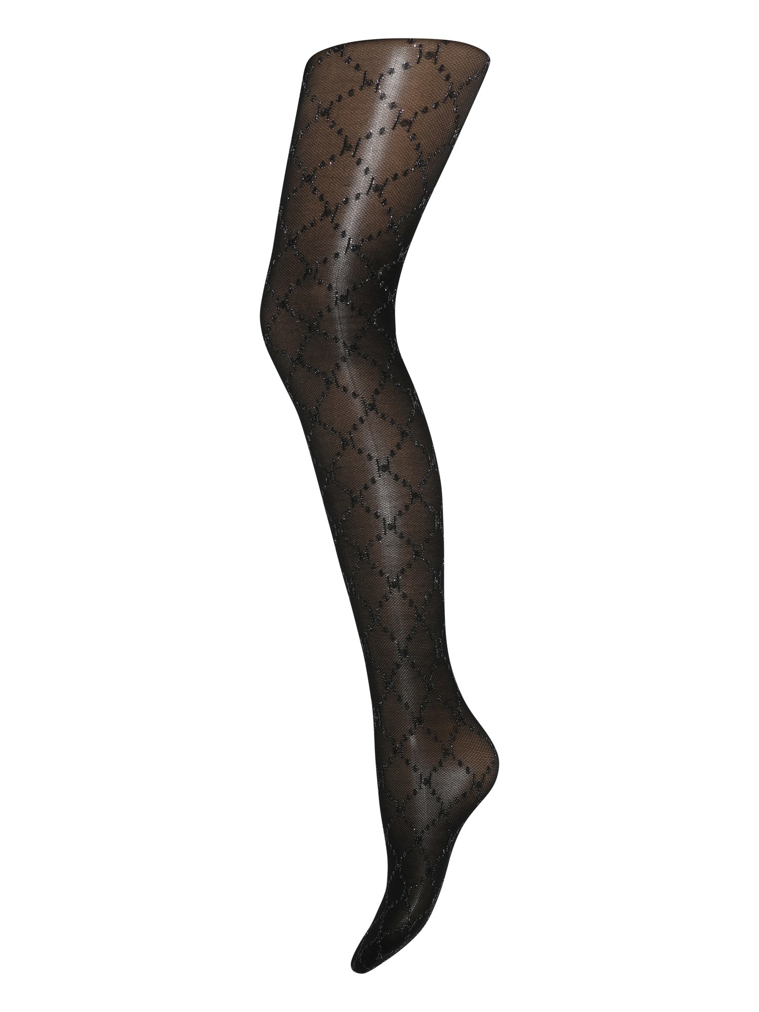 Festlige sorte strømpebukser fra Hype the Detail med det velkendte logomønster og sølv glitter.