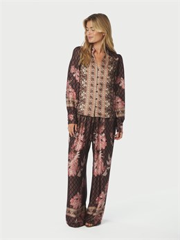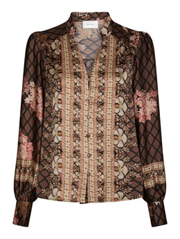 Smuk skjortebluse fra Neo Noir i blød satinkvalitet med et virkelig flot botanisk print i brune og rosa nuancer. Blusen har lange ærmer, v-udskæring ved halsen og dekorative knapper. Modellen på billedet er 176 cm og iført størrelse 36.