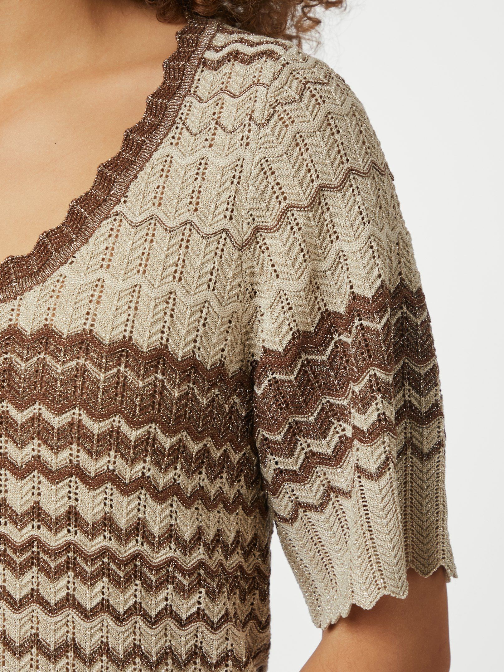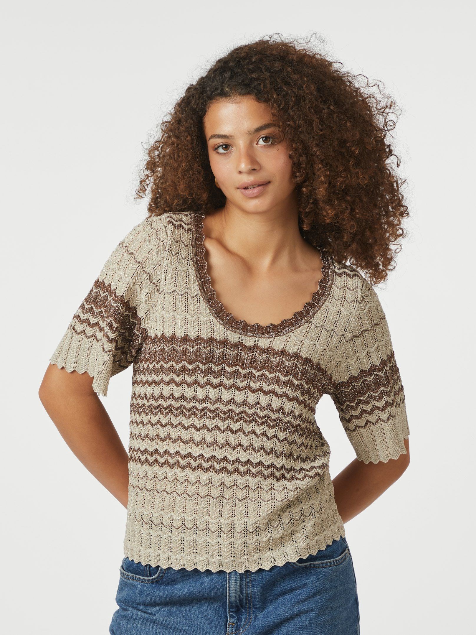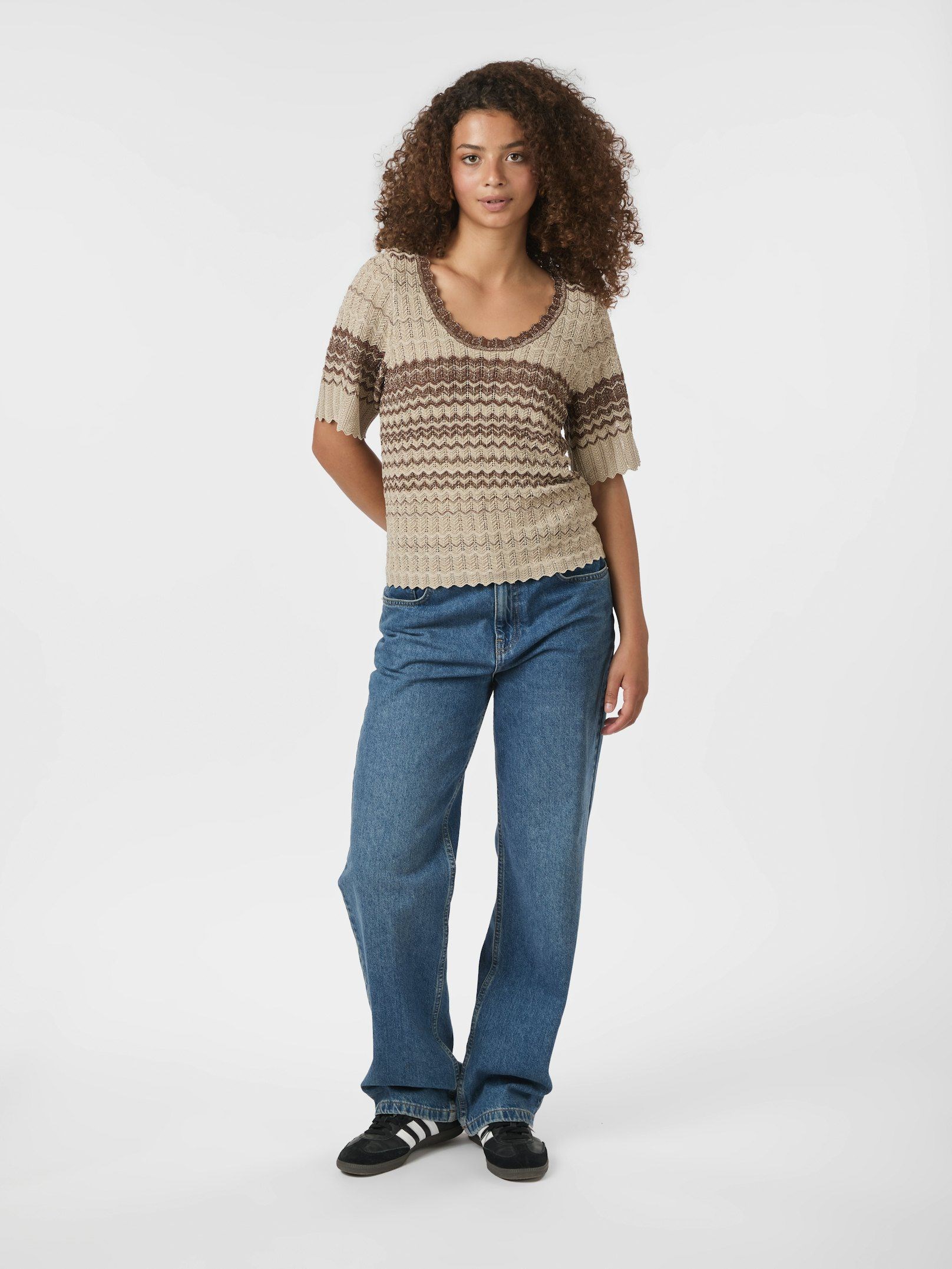 Fin strikket t-shirt bluse fra Neo Noir, i et flot skinnede mixet viscose materiale med fine brune nuancer.