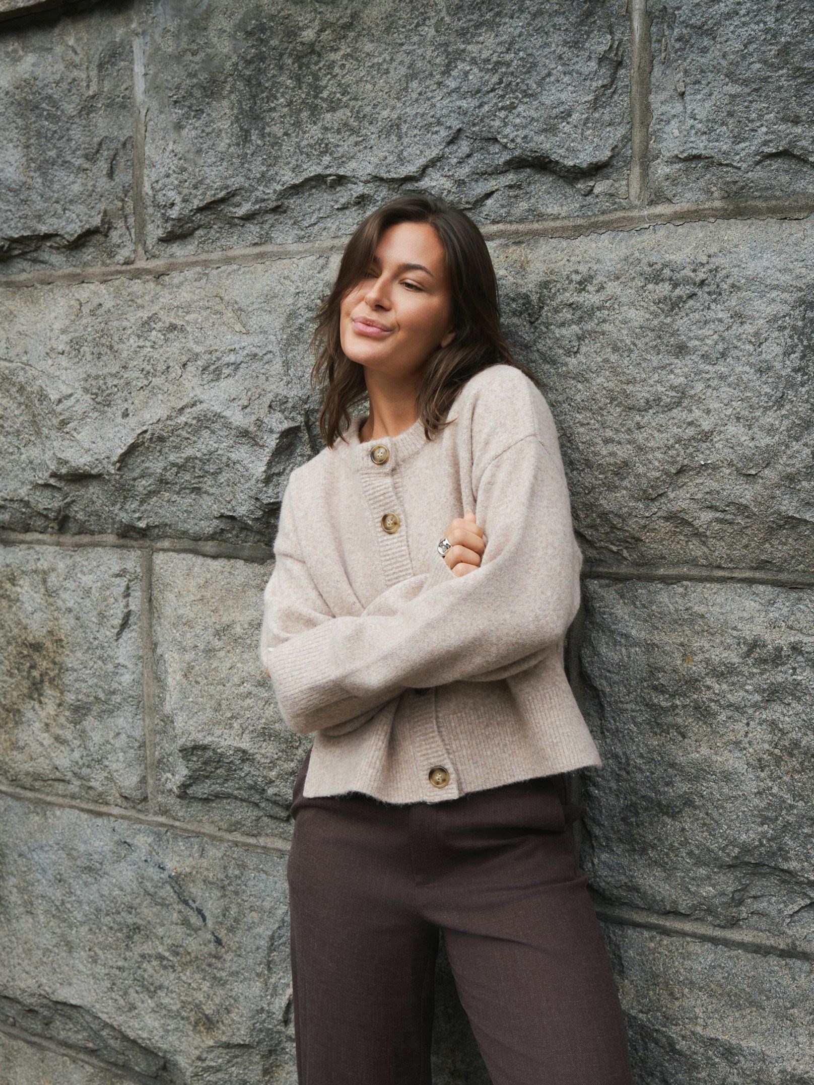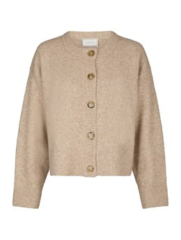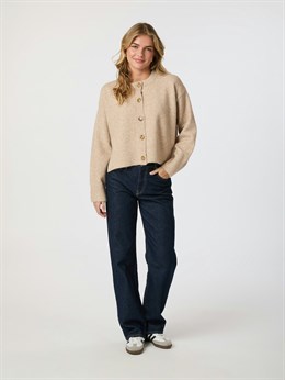 Flot sandfarvet cardigan fra Neo Noir i blød kvalitet med boxy pasform og dekorativ slids i siden. Modellen på billedet er 176 cm høj og iført en str. 36.