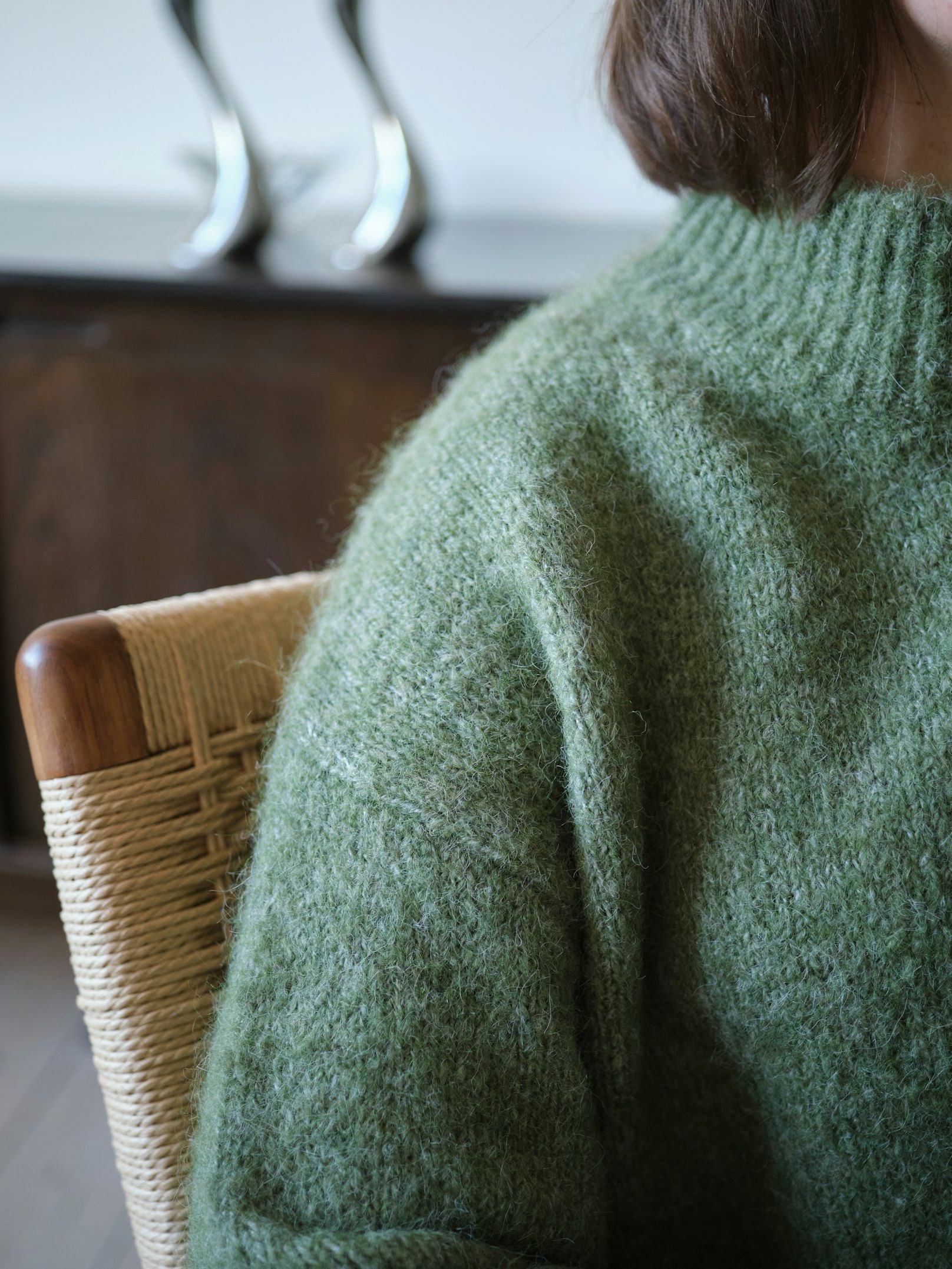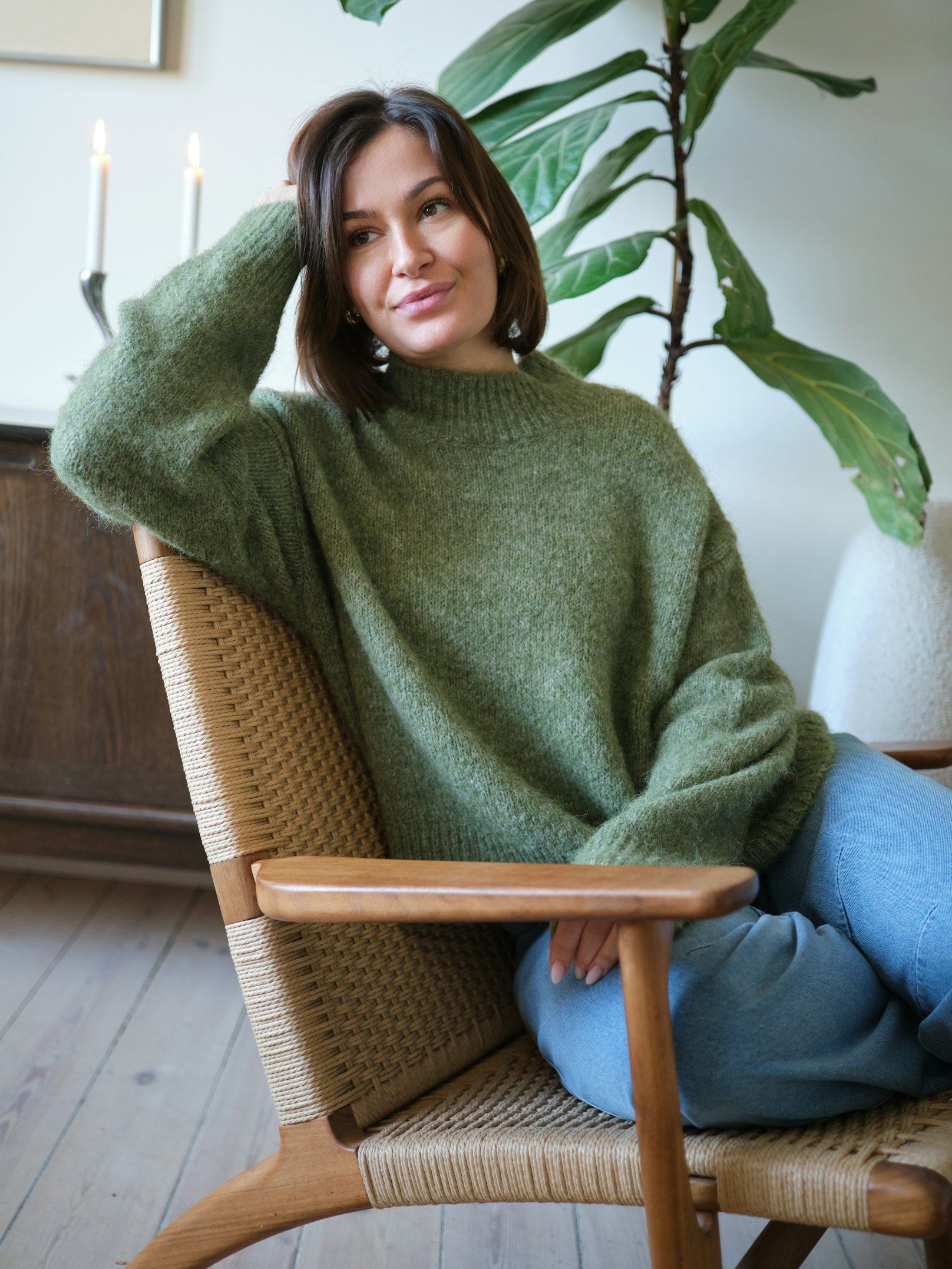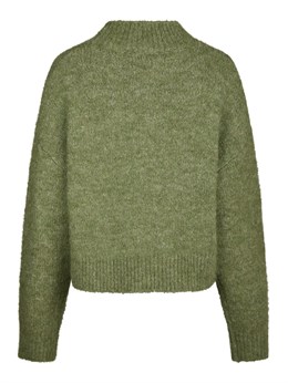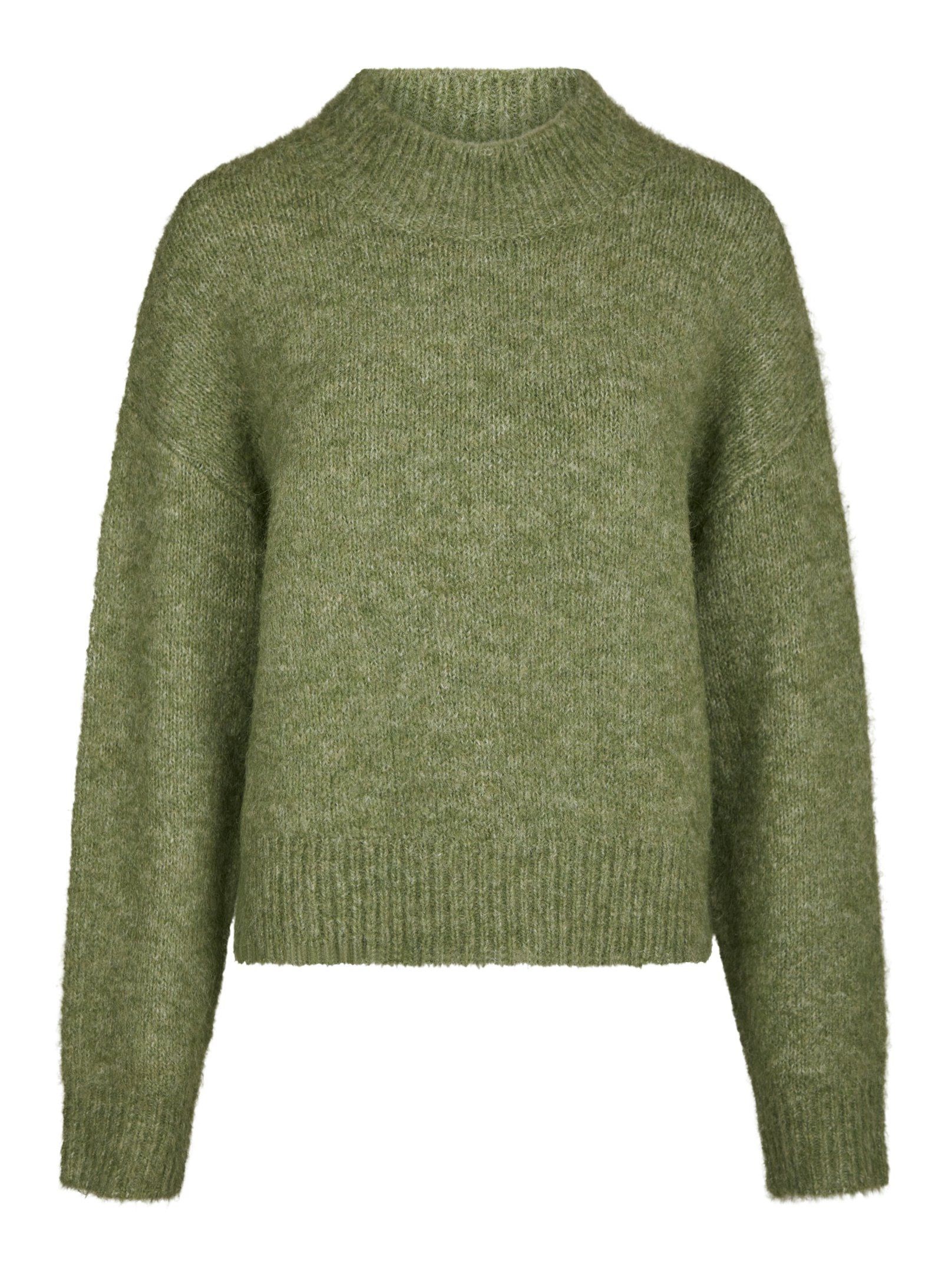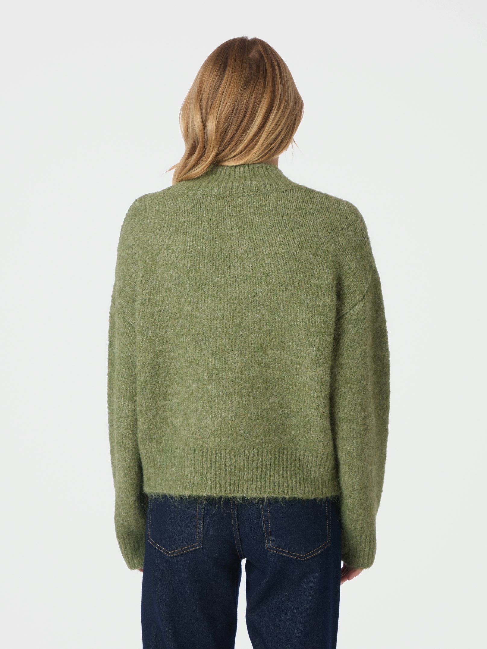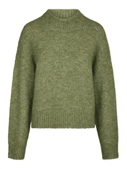 Lækkker striktrøje fra Neo Noir i grønt fluffy materiale med løs pasform og høj hals. Modellen er 176 høj og iført størrelse 36.