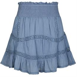 Kort nederdel med fine flæse detaljer og smock elastik ved taljen for komfortabel pasform. Kvaliteten er en blød bomulds voile som falder smukt. Modellen er 176 cm og bærer en størrelse 36