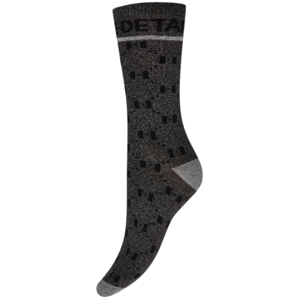 Fine strømper fra Hype the Detail med i blød og behagelig kvalitet med flot sølv og grå glittereffekt, logomønster og sort skrift øverst.