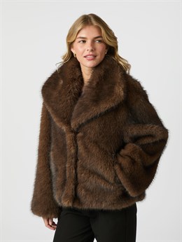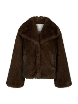 Mega flot jakke fra Neo Noir i brunt faux fur materiale. Jakken har en cool oversized pasform. Modellen er 176 høj og iført størrelse 36.