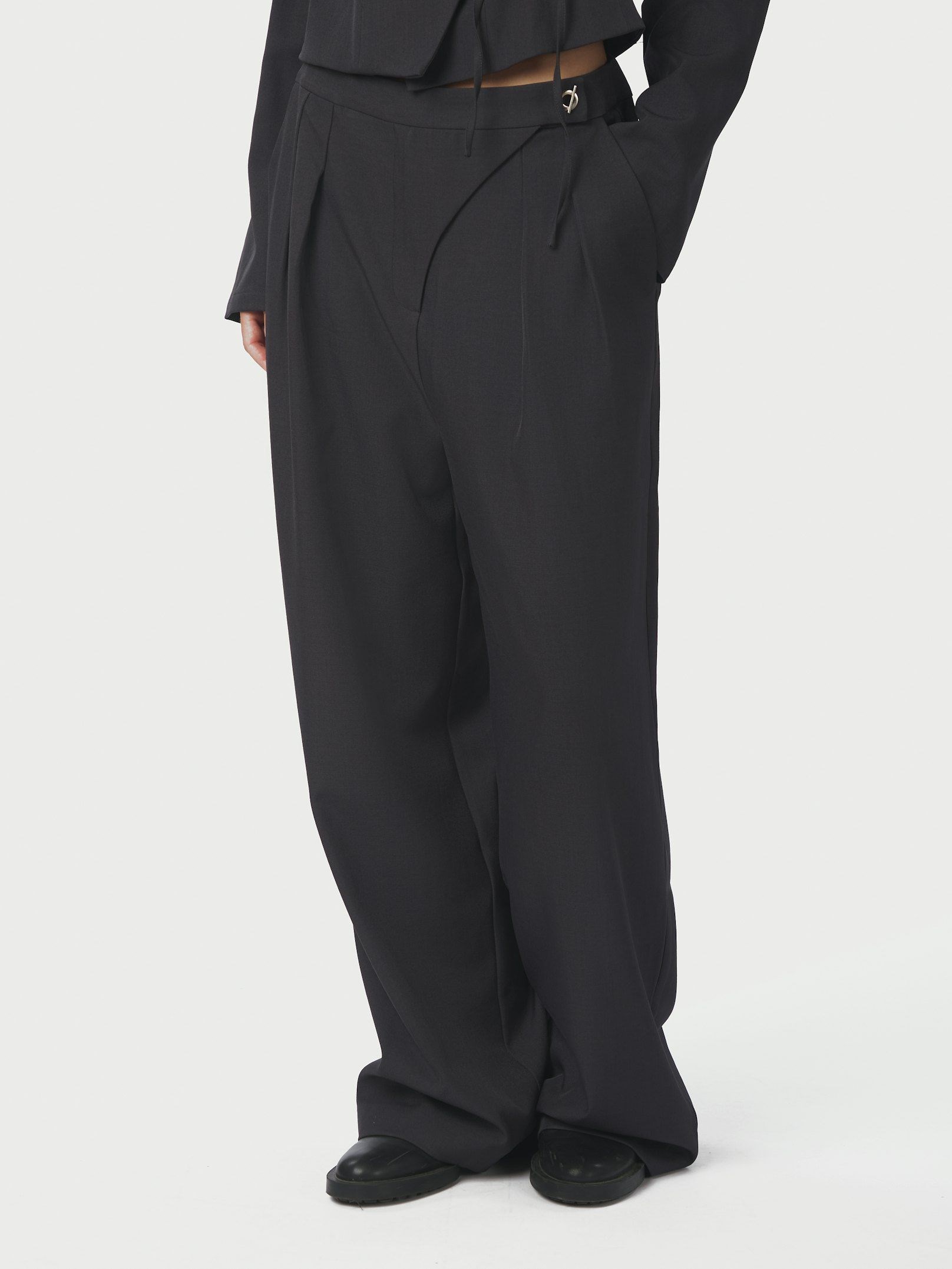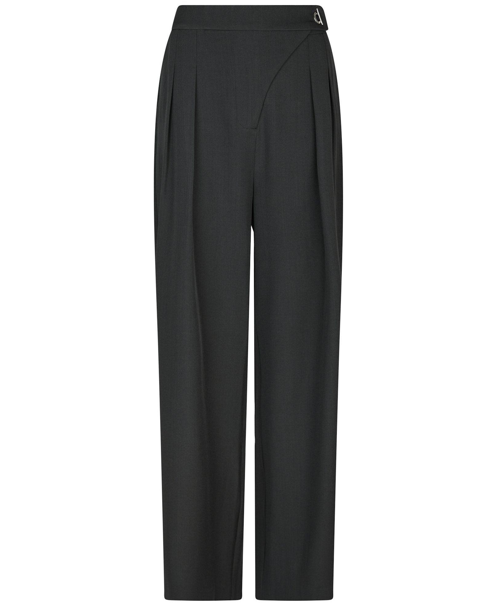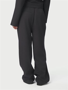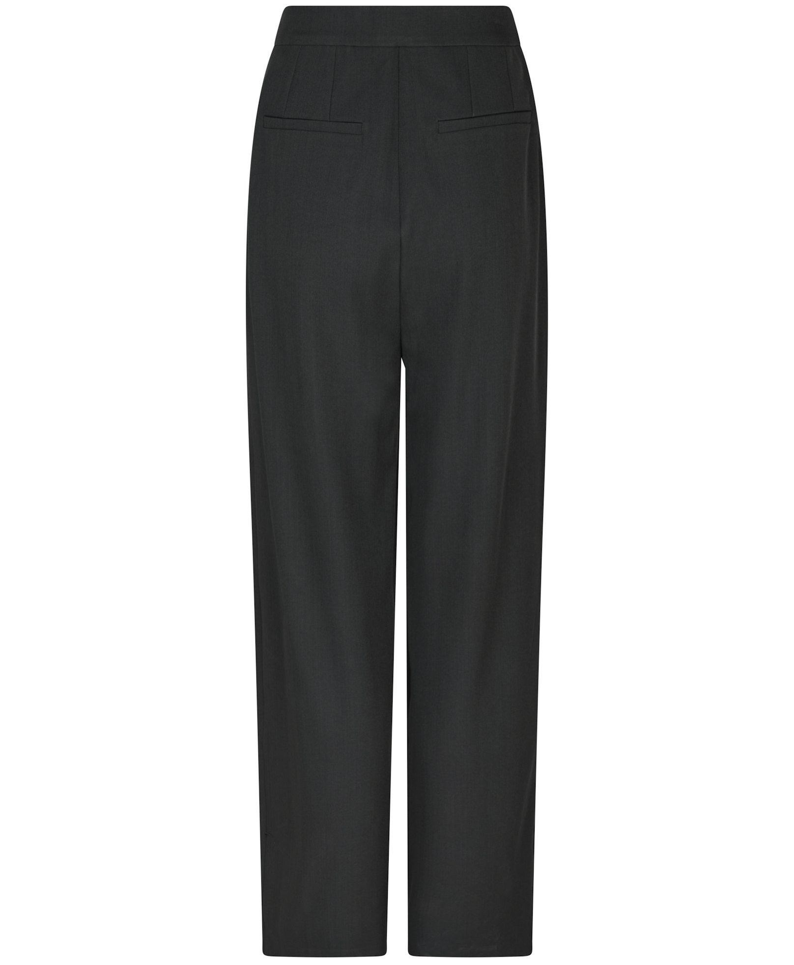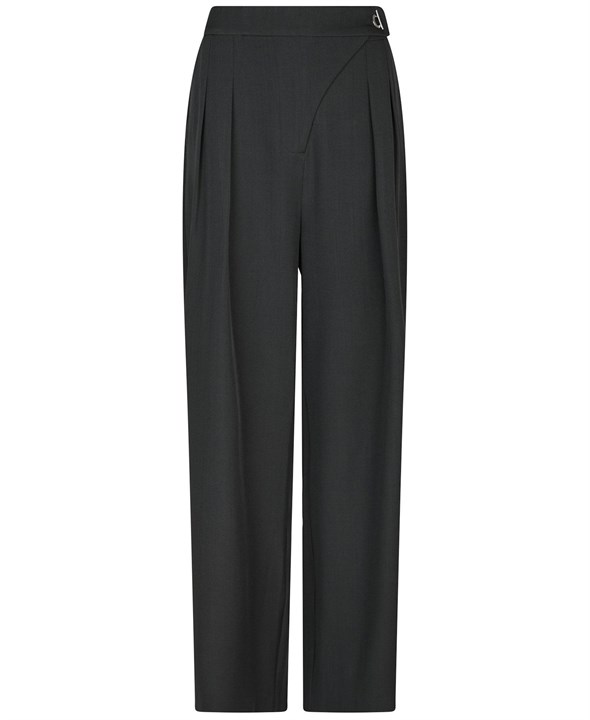 Lækre højtaljede jakkesætsbukser fra Neo Noir med dejlig løs pasform. Bukserne har en dekorativ o-ring lukkedetalje og skjult elastik i taljen for perfekt pasform. Modellen er 176 cm og bærer en størrelse 36.